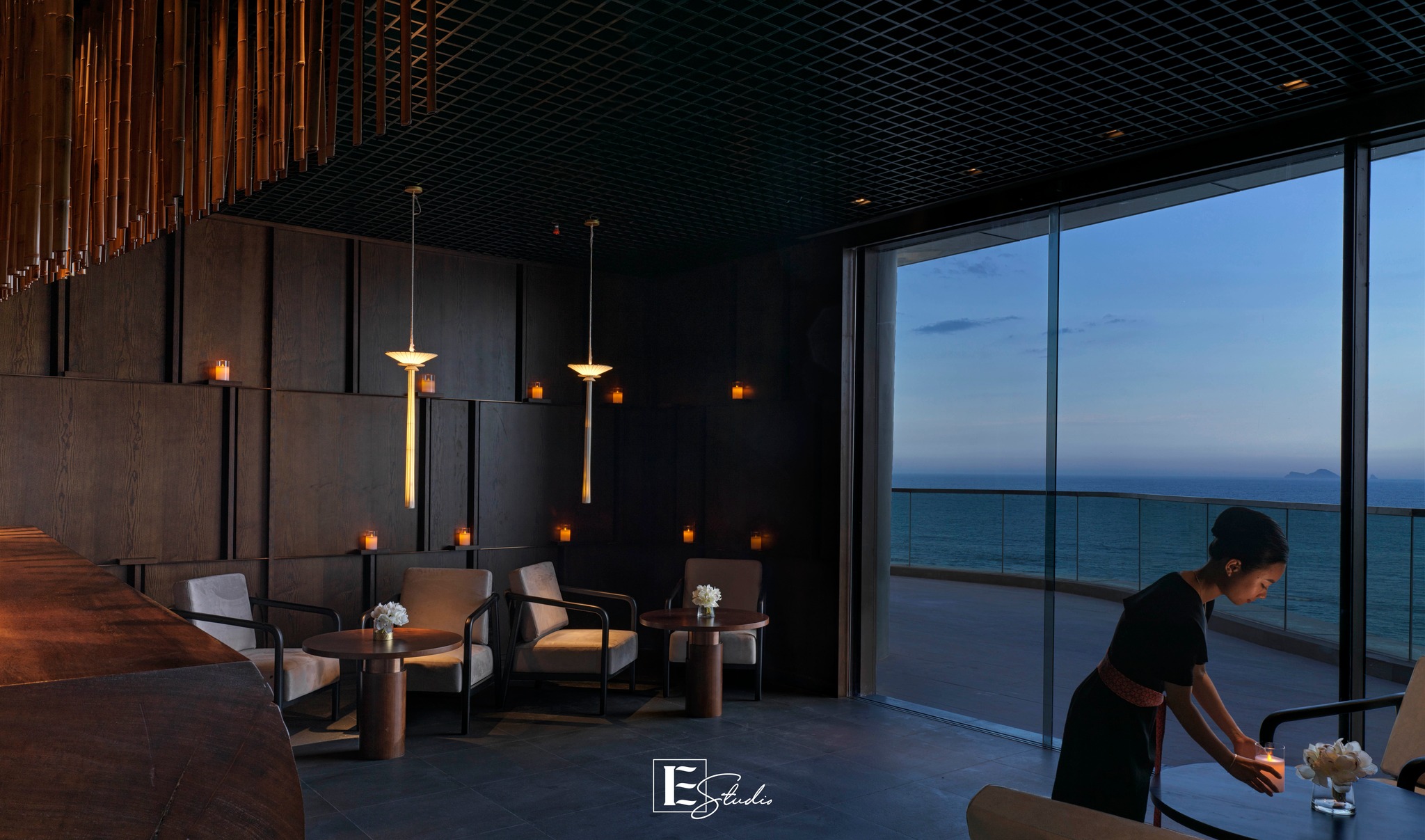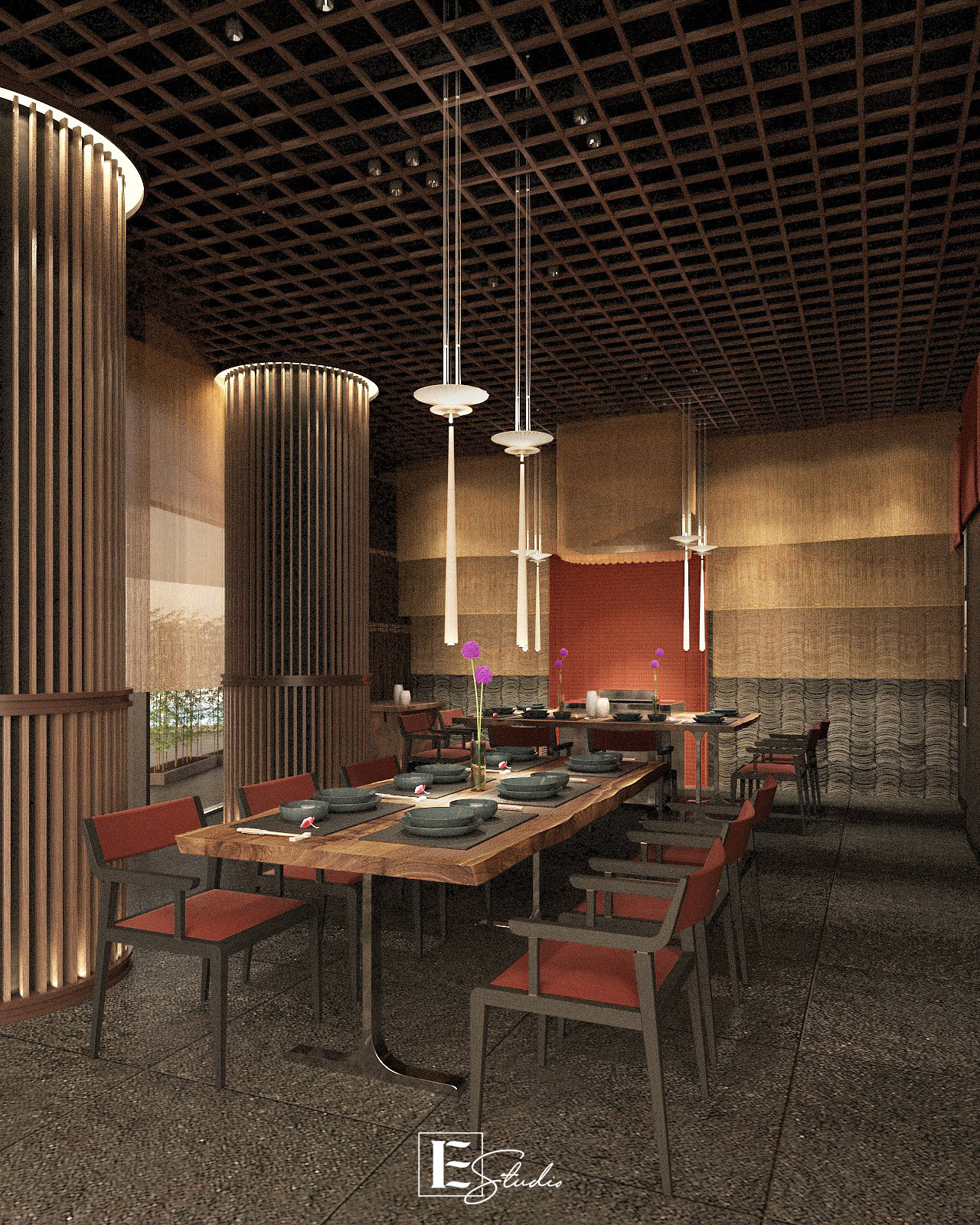 Lấy ý tưởng từ hình ảnh mặt trời mọc trên biển Kobe, nhà hàng Signature gây ấn tượng thị giác mạnh mẽ với gam màu đặc trưng của Nhật Bản. Các chất liệu được lựa chọn cũng được tính toán cẩn thận để tái hiện hoàn hảo những nét văn hóa riêng của nước Nhật. Bức tường đỏ tượng trưng cho hình ảnh mặt trời mọc, mặt biển được khéo léo thể hiện qua những mảng kính lấp lánh được làm từ vỏ chai rượu Sake truyền thống của xứ Phù Tang hay những tấm rèm Noren tượng trưng cho những áng mây bồng bềnh tạo nên bức tranh thiên nhiên hùng vĩ nhưng không kém phần gần gũi, thân thuộc với văn hóa Nhật.