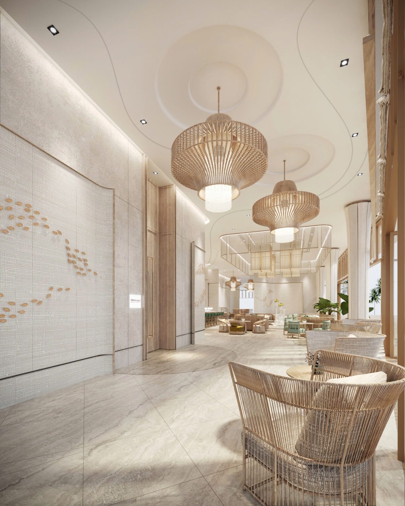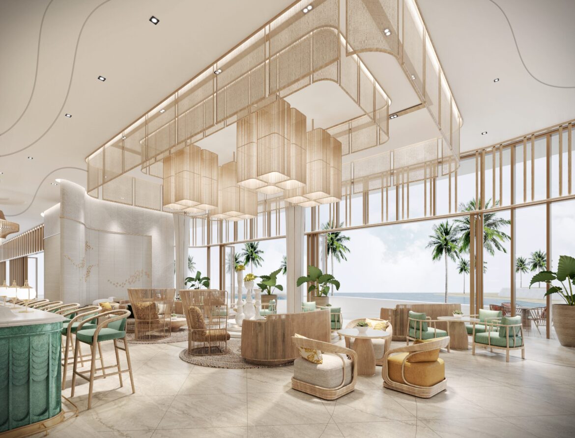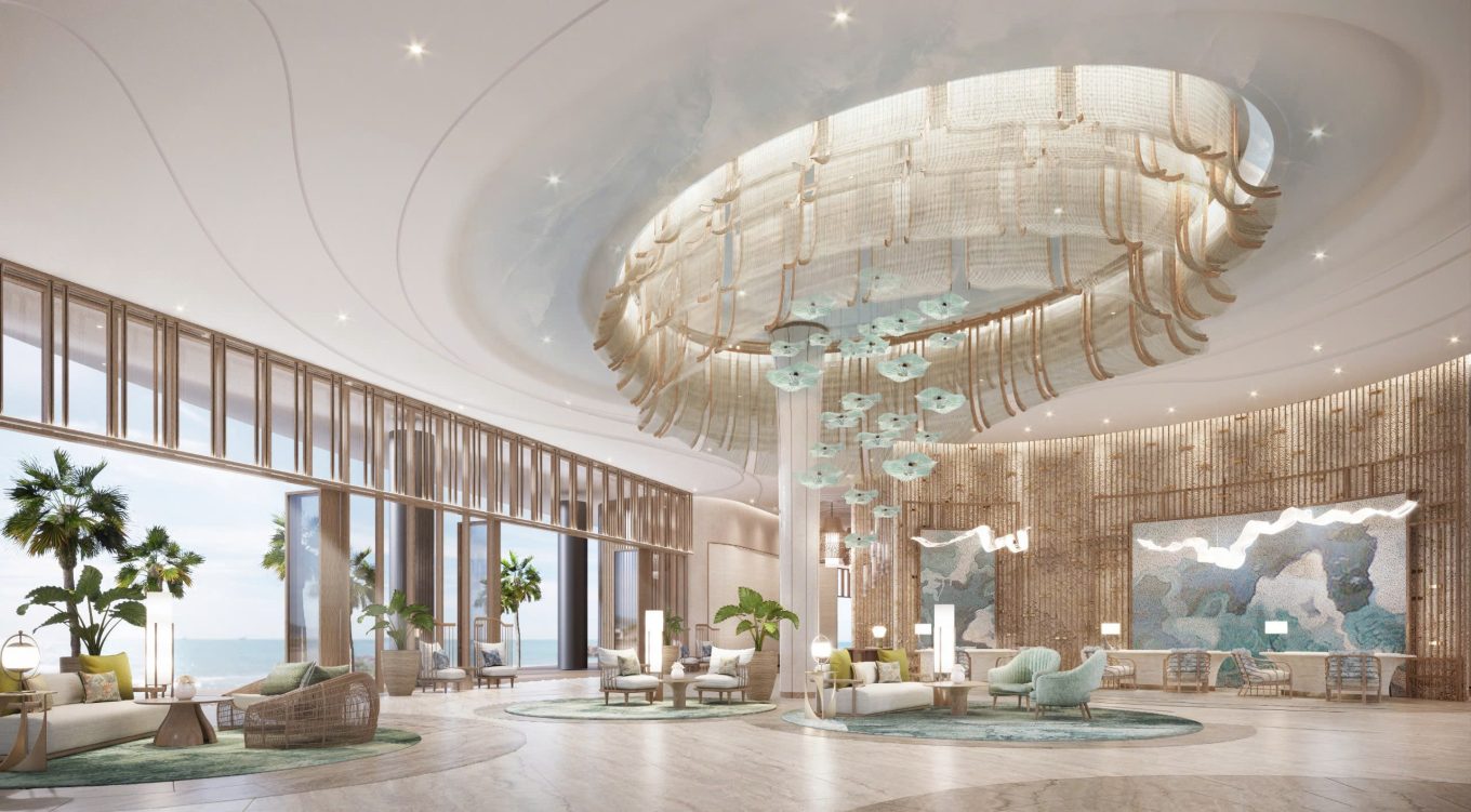 Nhằm sáng tạo ra không gian mang đậm dấu ấn văn hóa Việt Nam tại Yacht Building của Gran Meliá Nha Trang, các KTS EuroStyle Studio đã đưa các đặc điểm từ biển và núi, phản ánh bản sắc dân tộc vào thiết kế khu vực chung, sảnh chờ chính của tòa nhà. Lấy cảm hứng từ câu chuyện của Lạc Long Quân và Âu Cơ kết hợp cùng phong cách nhiệt đới và các yếu tố thiên nhiên phối cùng các gam màu xanh dịu mắt và họa tiết sóng biển nhẹ nhàng, thiết kế mang đến sự thư thái cho khách ghé thăm. Với việc kết hợp các đặc điểm văn hóa với các cảnh quan tự nhiên, các KTS EuroStyle Studio đã sáng tạo nên một không gian hài hòa, tôn vinh bản sắc dân tộc Việt Nam.
